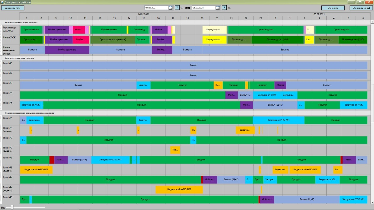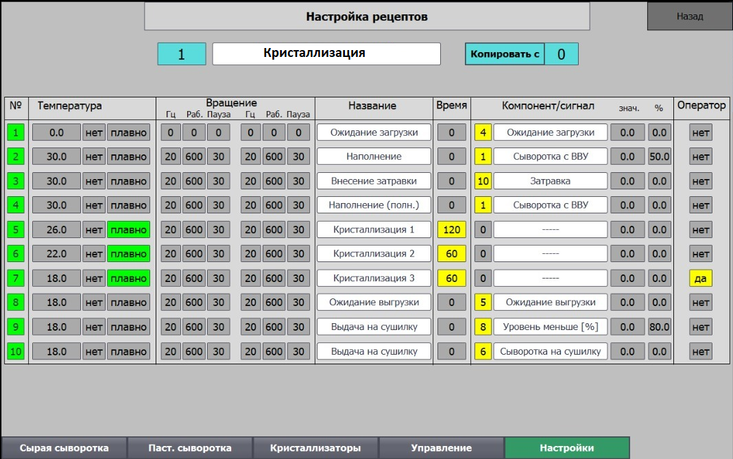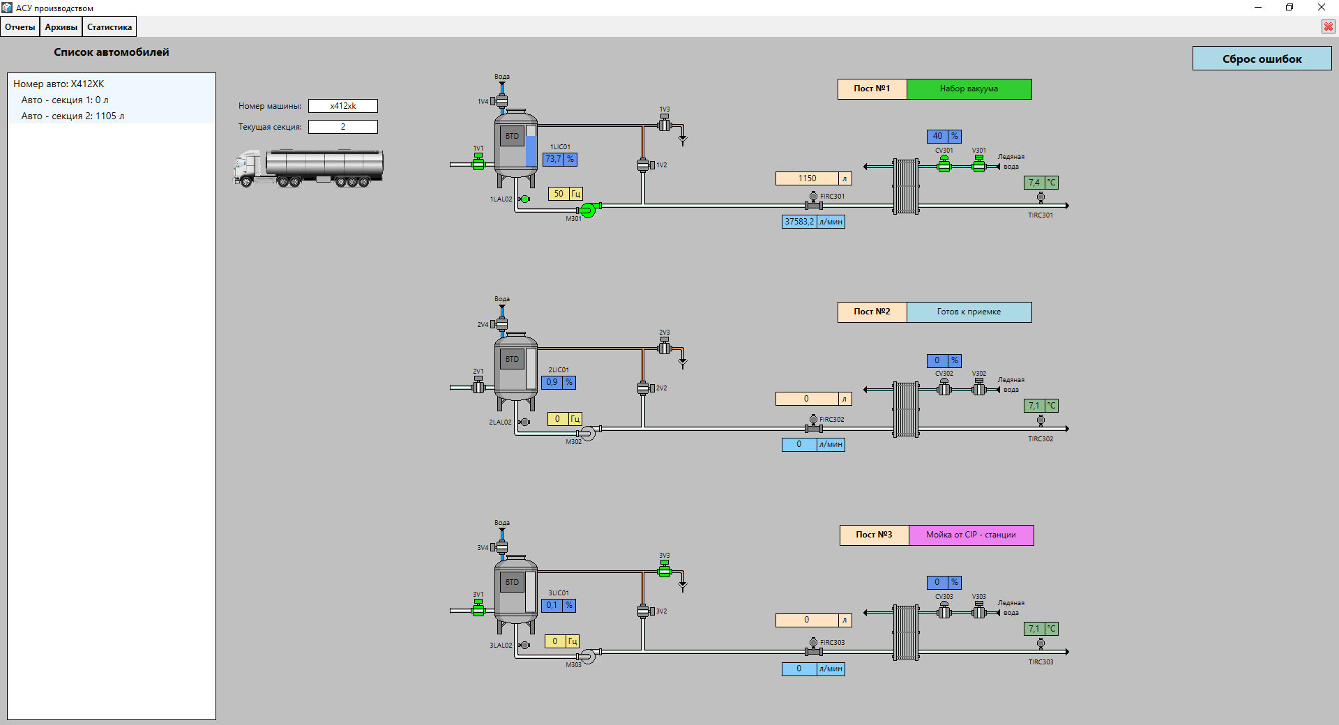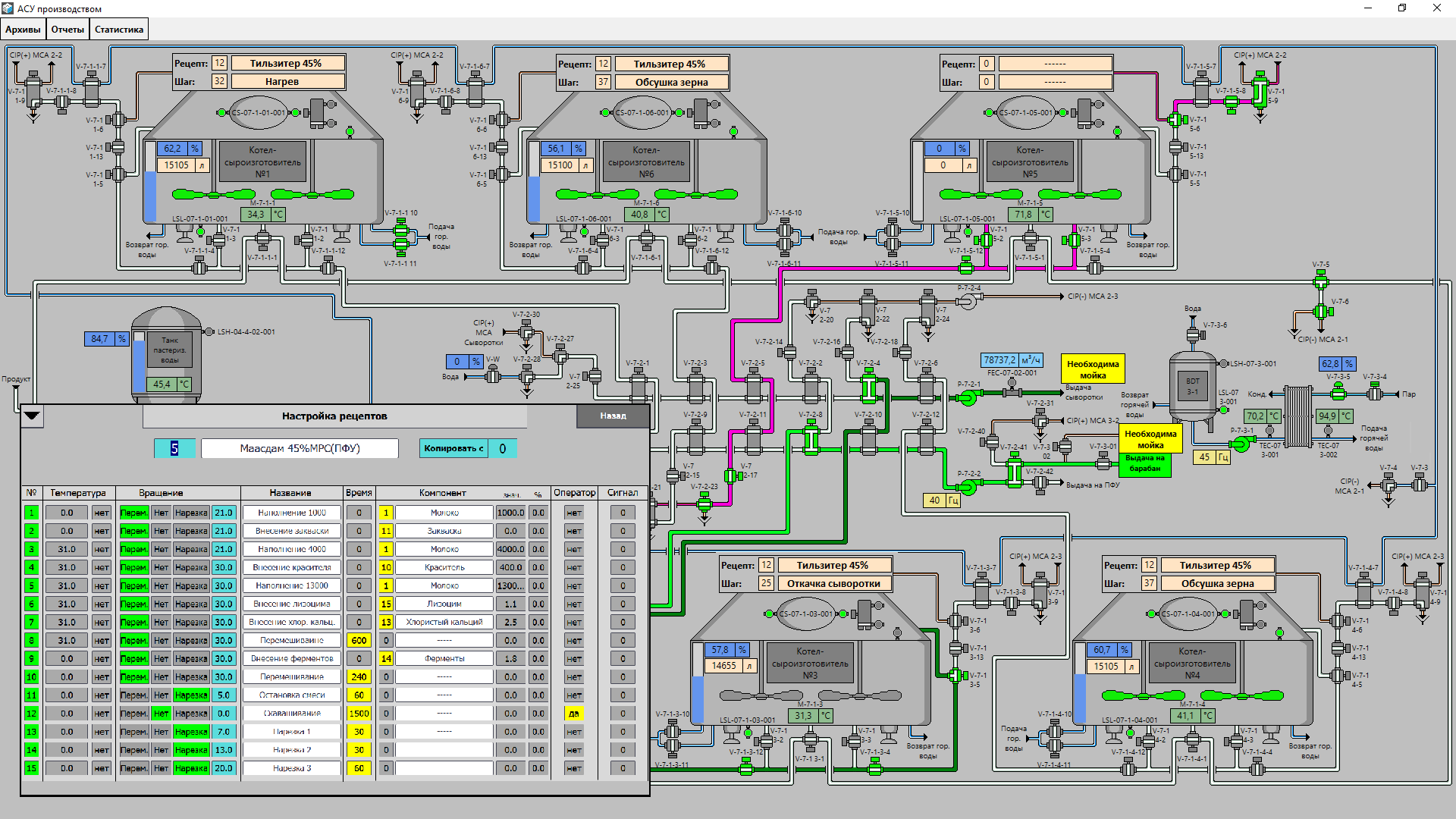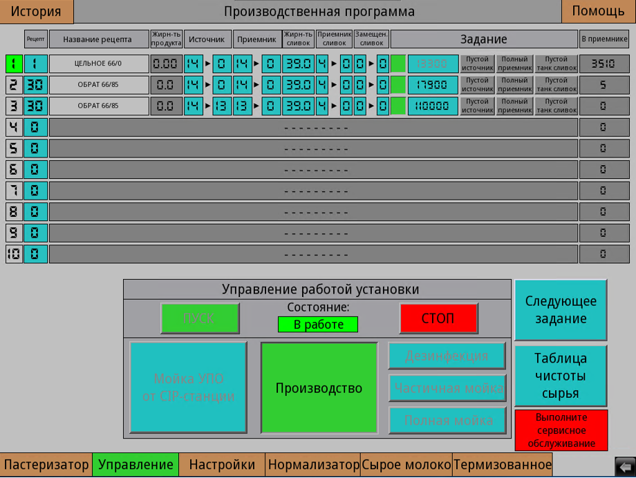 Sterowanie odcinkami odbywa się poprzez wprowadzenie programu produkcyjnego z receptur, włączenie tras lub ustawienie sekwencji poszczególnych operacji. Każdy odcinek został maksymalnie zautomatyzowany.